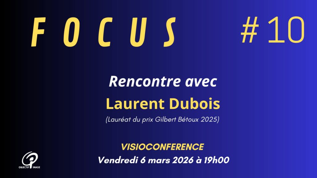 Pour recevoir le lien de la visioconférence, il vous faut aller dans l’onglet PARTICIPER, via le site d’Objectif Image. (Il faut être « inscrit » sur le site pour suivre ce lien).